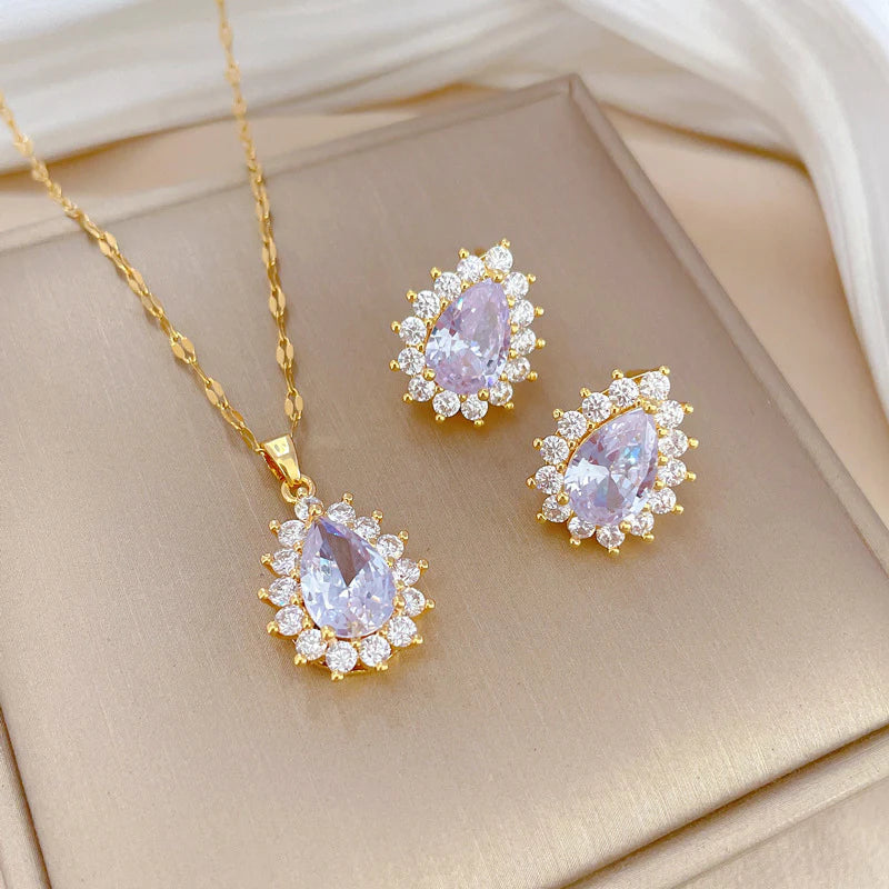Color: D427 necklace [titanium steel chain Copper Pendant], D428 stud earrings [Silver Needle copper real gold plating]]